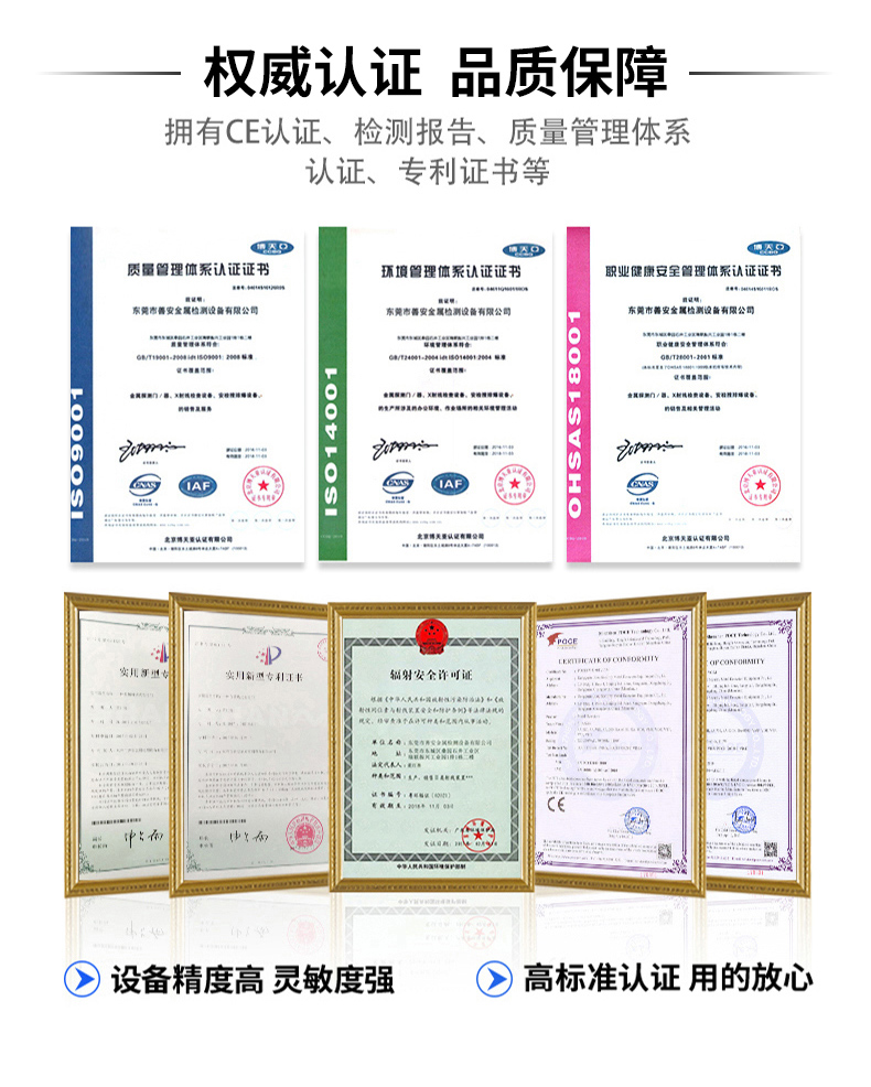 | 检测精度 | SUS 304球:Φ0.3mm 金属丝:Φ0.2×2mm 陶瓷玻璃球:Φ1.0mm 备注:最小可检测的异物尺寸与产品内物质成分、包装材料、厚度大小等参数有很大关系。在实际生产环境中,请以实际产品测试结果为准。 |